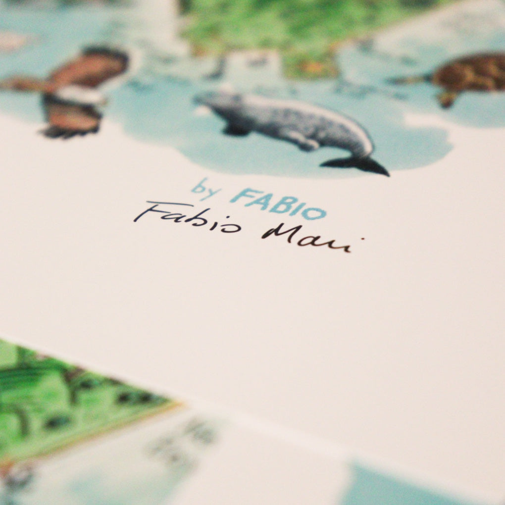 Through our hand-drawn maps and prints, we celebrate the wild beauty of nature and turn every piece into a small act of care. Part of the revenue from each sale goes to wildlife associations, local projects, and people working hard to protect animals and their habitats all around tne world wherever help is needed.